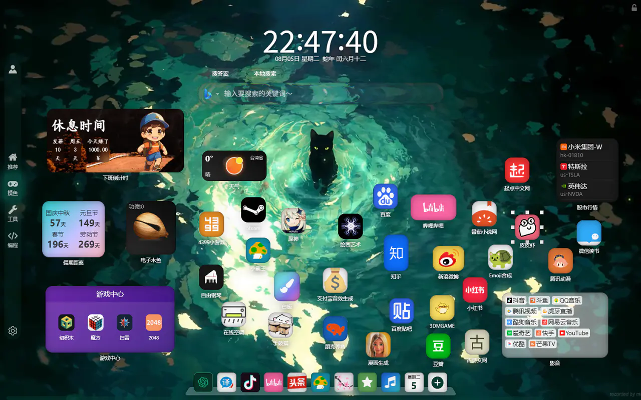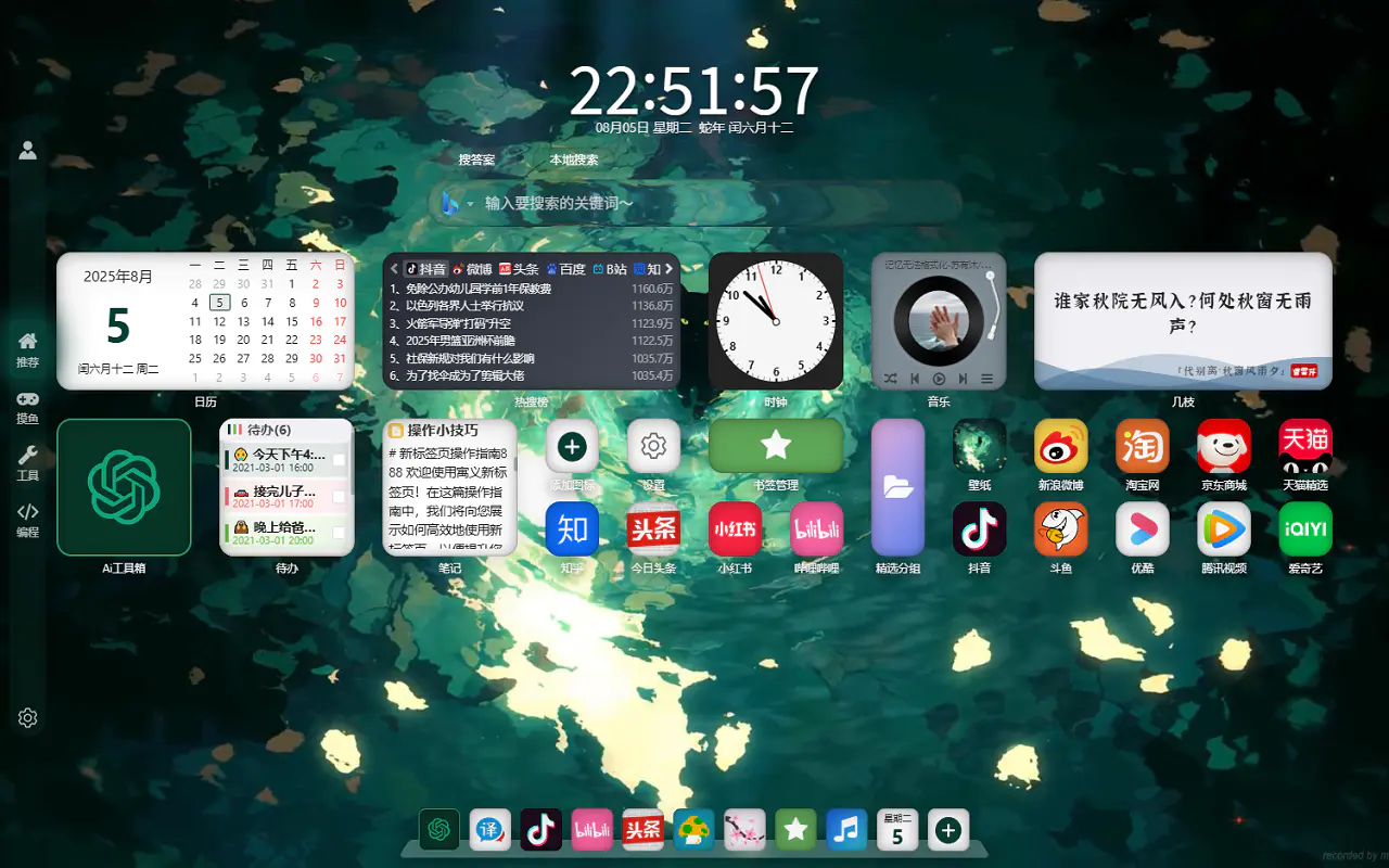 各种可以自定义尺寸的组件,如:一言,古诗,摸鱼聊天室,舔狗日记,弹幕,看板娘,游戏中心等...